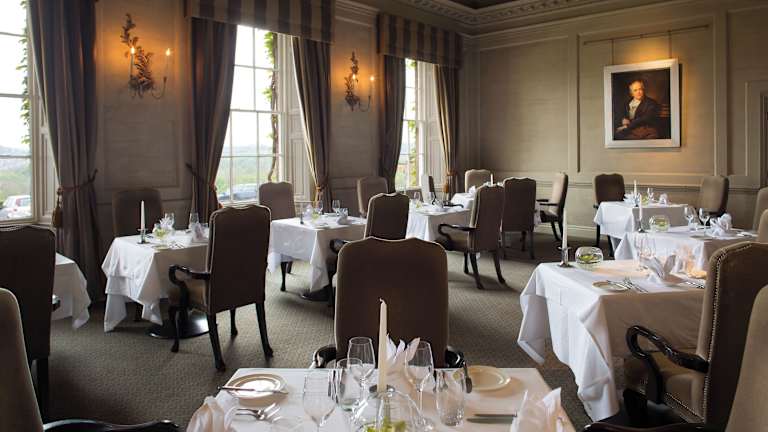 Im georgianischen Restaurant geniessen Gäste preisgekrönte Küche, die mit 2 AA-Rosetten ausgezeichnet wurde. Zimmer- und Frühstücksservice sind ebenfalls verfügbar, wobei spezielle Ernährungsbedürfnisse auf Anfrage berücksichtigt werden können.