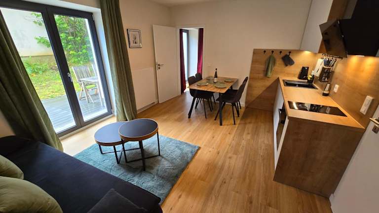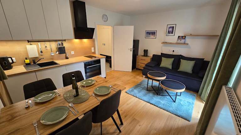 Die Ferienwohnung verfügt über 1 Schlafzimmer, eine gut ausgestattete Küche mit Kühlschrank und Geschirrspüler, ein Wohnzimmer sowie einen Flachbild-TV. Die Unterkunft ist eine Nichtraucherunterkunft, in der keine Haustiere gestattet sind.