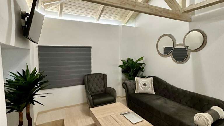 Die Villa umfasst ein Schlafzimmer, ein Wohnzimmer sowie eine voll ausgestattete Küche mit Kühlschrank und Kaffeemaschine. Zudem steht ein Badezimmer mit Dusche und Haartrockner zur Verfügung. Die Bequemlichkeit wird durch Handtücher und Bettwäsche ergänzt. Alle Zimmer sind klimatisiert und haben einen Balkon.