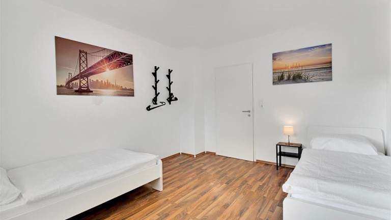 Die Ferienwohnung verfügt über zwei Schlafzimmer, ein Badezimmer mit Dusche, einen Flachbild-TV sowie eine gut ausgestattete Küche, die einen Kühlschrank und einen Geschirrspüler umfasst. Handtücher und Bettwäsche werden bereitgestellt.