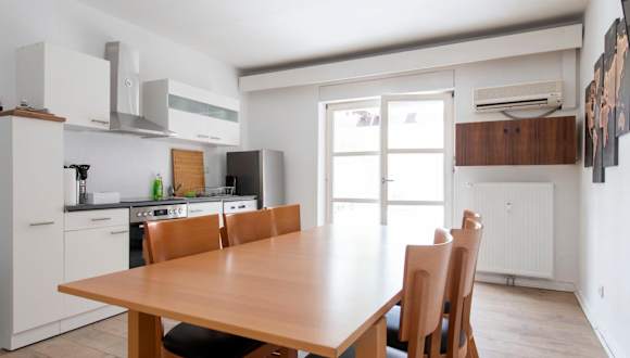 Die Unterkunft Workers Home- Central bietet Platz für bis zu 8 Gäste mit Einzel-Boxspringbetten in 4 Schlafzimmern. Es handelt sich um eine Nichtraucherunterkunft mit einer Gemeinschaftslounge und einer Terrasse, die einen schönen Stadtblick bietet. Der Check-in erfolgt ab 15:00 Uhr und der Check-out bis 10:00 Uhr.