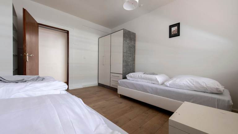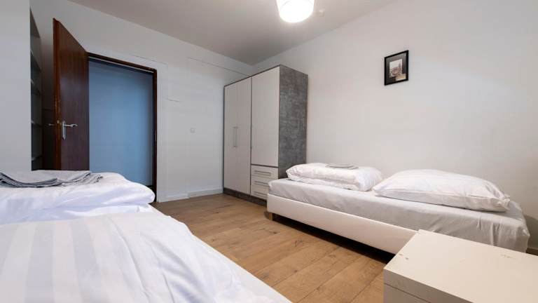 Die Ferienwohnung besteht aus 4 Schlafzimmern, einer Küche, einem Flachbild-TV und einem Sitzbereich. Das Badezimmer ist mit einer Dusche ausgestattet. Handtücher, Bettwäsche und Wäsche werden bereitgestellt.