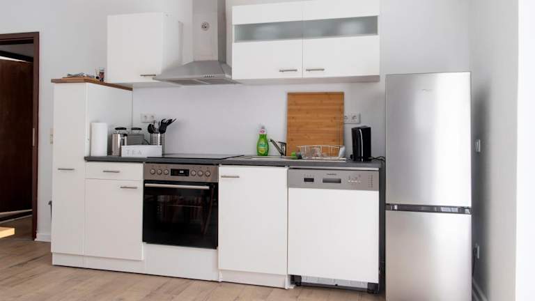 Es gibt eine voll ausgestattete Küche mit Kühlschrank und Geschirrspüler. Zudem wird eine Essenslieferung in die Unterkunft angeboten.