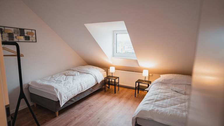 Das Working Apartment bietet Platz für bis zu 8 Gäste in 5 Schlafzimmern. Die Unterkunft bietet eine Gemeinschaftslounge, gratis Wifi und einen kostenlosen Privatparkplatz. Die Reinigung erfolgt durch professionelle Reinigungsfirmen und es wird eine Strengheit bei der Einhaltung der Hygienevorgaben beachtet.