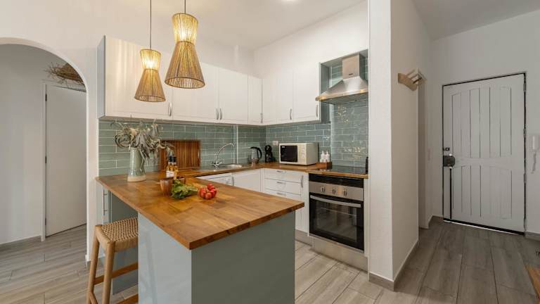 Die Unterkunft verfügt über ein Ferienhaus mit Klimaanlage, das aus zwei Schlafzimmern, einem Wohnzimmer, einer voll ausgestatteten Küche mit Kühlschrank und Kaffeemaschine sowie einem Badezimmer mit Dusche und kostenlosen Pflegeprodukten besteht. Handtücher und Bettwäsche werden bereitgestellt.