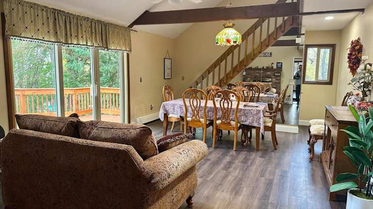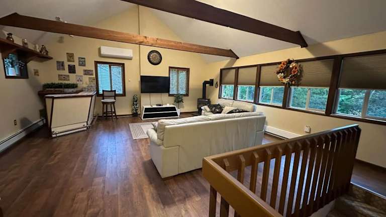 Das Ferienhaus befindet sich in Long Pond, nur 37 km vom Naherholungsgebiet Delaware Water Gap entfernt. In der Umgebung gibt es Möglichkeiten zum Skifahren sowie Aktivitäten wie Billard. Die Nähe zum Kalahari Waterpark (6,1 km) und zum Pocono Raceway (11 km) erhöht die Attraktivität der Lage.