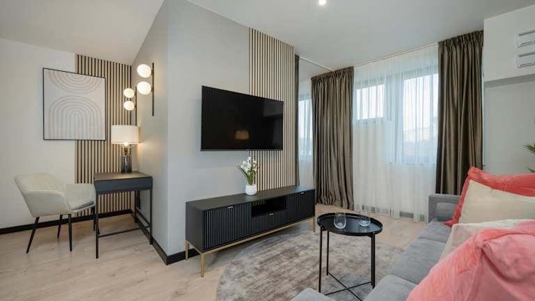 Die Wohneinheiten bieten einen Essbereich, einen Flachbild-TV sowie ein eigenes Badezimmer mit Dusche und kostenlosen Pflegeprodukten. Zur Ausstattung gehören zudem eine Mikrowelle, ein Toaster, eine Kaffeemaschine und ein Wasserkocher.