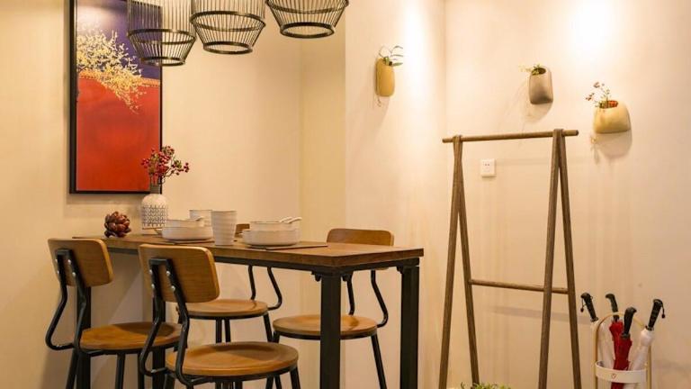 Wuhan Wuchang·Happy Valley· Locals Apartment 00121930 bietet ein heimeliges Ambiente mit kostenlosem WLAN und Klimaanlage. Die Ferienwohnung verfügt über eine Gemeinschaftsküche und einen Balkon, was den Aufenthalt angenehm gestaltet. Ein Wasserkocher und ein Kühlschrank stehen den Gästen zur Verfügung.