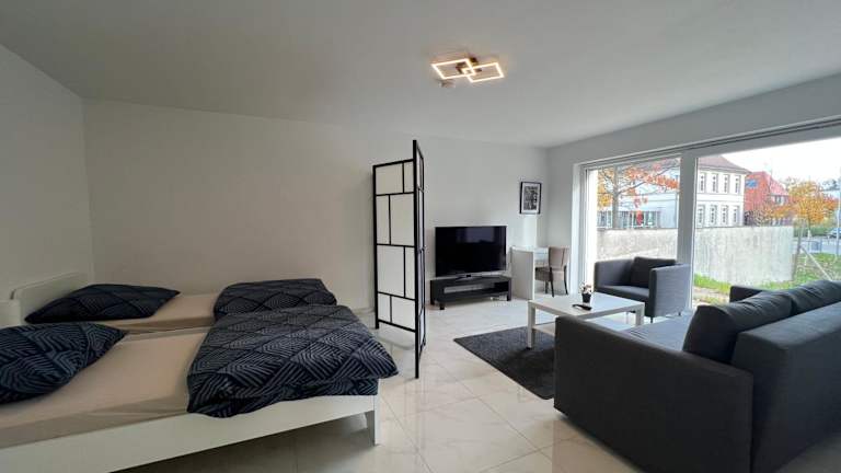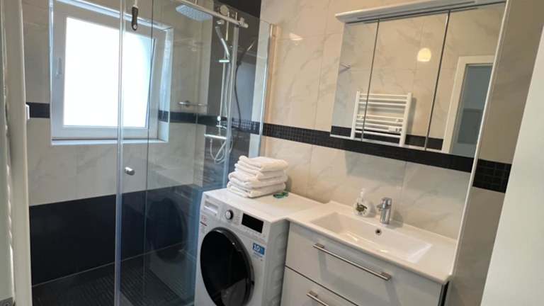 Die Ferienwohnung umfasst zwei Schlafzimmer und ist mit einer Küche ausgestattet, die über einen Kühlschrank und einen Geschirrspüler verfügt. Ein Flachbild-TV und ein gemütlicher Sitzbereich sind ebenfalls vorhanden. Das Badezimmer ist mit einer Dusche ausgestattet. In dieser Unterkunft sind auch Handtücher und Bettwäsche verfügbar.