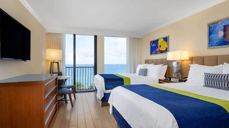 Das Wyndham Deerfield Beach Resort bietet eine moderne Unterkunft mit 177 Zimmern, verteilt auf 8 Etagen, die über einen Aufzug zugänglich sind. Die 24-Stunden-Rezeption wird von mehrsprachigem Personal betreut und bietet verschiedene Annehmlichkeiten wie eine Garderobe, Gepäckaufbewahrung, einen Geldautomaten sowie Hilfestellung bei der Buchung von Ausflügen. Das Hotel stellt sicher, dass Gäste sich wohlfühlen, und verfügt über rollstuhlgerechte Einrichtungen. Zu den weiteren Services gehören ein Babysitterservice, eine Autovermietung und ein eigener Shuttlebus. WLAN steht im Hotel zur Verfügung.
