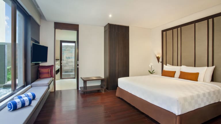 Die Zimmer im Wyndham Dreamland Resort Bali sind klimatisiert und bieten einen herrlichen Meerblick von Balkon oder Terrasse. Sie verfügen über ein Kingsize-Bett, Minibar, Schreibtisch und eine Tee-/Kaffeemaschine. Die Zimmer sind mit einem Telefon, TV-Gerät und kostenlosem Wifi ausgestattet und bieten zusätzlich Hausschuhe. Die Badezimmer sind mit Dusche, Badewanne und Whirlwanne ausgestattet. Auch rollstuhlgerechte Zimmer und Nichtraucherzimmer sind buchbar.
