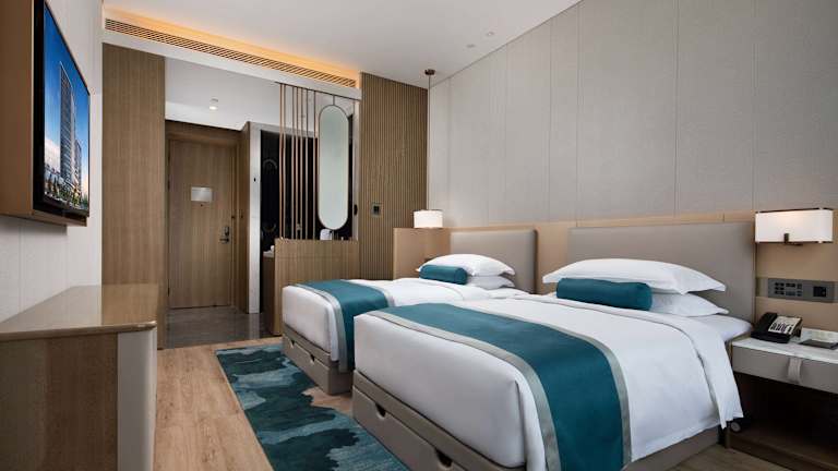 Die Zimmer im Wyndham Garden Shenzhen Longhua sind komfortabel und modern eingerichtet. Jedes Zimmer verfügt über einen Kleiderschrank und einige Zimmer sind mit einem Safe ausgestattet. Die klimatisierten Zimmer bieten einen angenehmen Aufenthalt und sind mit einem eigenen Badezimmer ausgestattet, das mit einer Dusche und Hausschuhen ausgestattet ist. Ein TV sorgt für Unterhaltung.