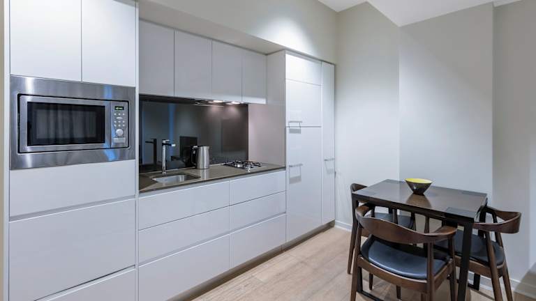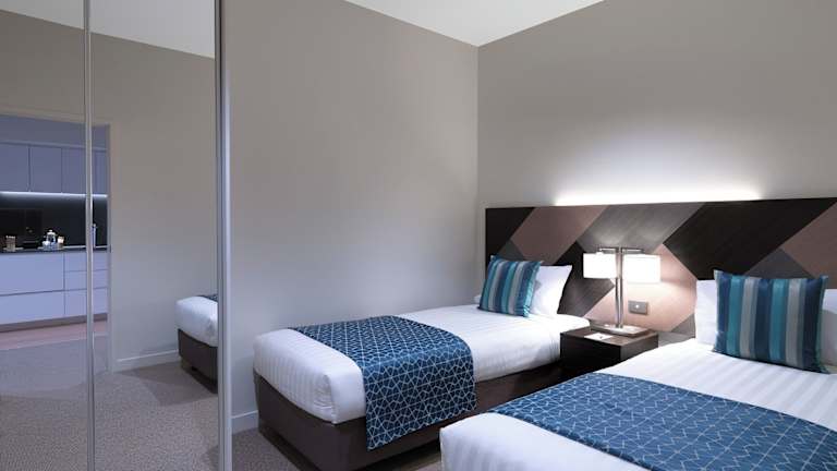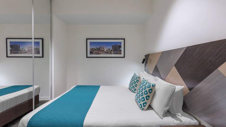 Die Zimmer sind grosszügig gestaltet und bieten ein angenehmes Raumklima durch Klimaanlage und Heizung. Die meisten Zimmer verfügen über einen Balkon oder eine Terrasse. Zur Ausstattung zählen ein Doppelbett oder ein Queensize-Bett, ein Badezimmer mit Dusche, ein Safe, eine Minibar und ein Schreibtisch. Die Kochnische ist mit einem Kühlschrank, Herd, Mikrowelle, Tee- und Kaffeemaschine sowie Geschirrspüler ausgestattet. Ein Bügelset, Telefon, TV-Gerät und Wifi sind ebenfalls vorhanden. Familien- und Nichtraucherzimmer sind verfügbar.