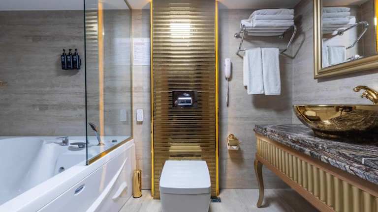 Jedes Zimmer besitzt ein Badezimmer. Das eigene Badezimmer ist mit einem Bademantel einem Haartrockner, einen Whirlpool, Toilettenartikeln und Hausschuhen ausgestattet. Ein gemütlicher Sitzbereich gehört auch dazu. Auf allen Hotelzimmern finden sich eine Minibar, ein Safe und ein Schreibtisch. Die Einrichtung jeder Wohneinheit wird durch eine Mikrowelle ergänzt. Ihr Zimmer verfügt über ein Telefon, einen CD-Player, ein Radio sowie einen Fernseher. Wenn benötigt, sind ebenso behindertenfreundliche Zimmer buchbar.