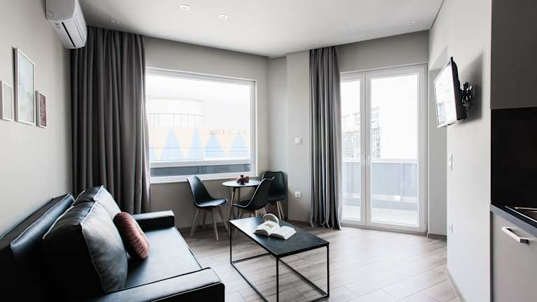 WYZ Athens Apartments by UPSTREET bietet klimatisierte Übernachtungsmöglichkeiten mit kostenlosem Wifi und einem Fitnesscenter. Die Unterkunft verfügt über einen Balkon und bietet einen schönen Stadtblick. Es wird darauf hingewiesen, dass der Zugang zur Unterkunft auf die 5. Etage über das Treppenhaus erfolgt, da der Aufzug nur bis zur 4. Etage hält.