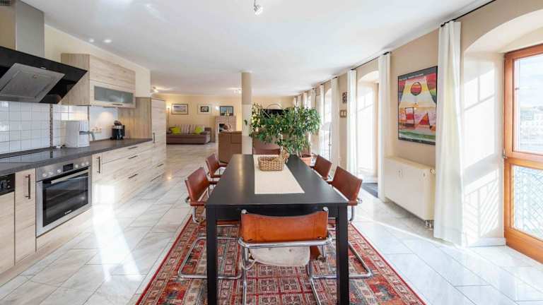 Die Ferienwohnung verfügt über 2 Schlafzimmer, 2 Badezimmer, Bettwäsche, Handtücher und einen Fernseher. Die voll ausgestattete Küche ermöglicht eine selbstständige Zubereitung von Mahlzeiten. Die Gäste können vom Balkon aus den Seeblick geniessen.