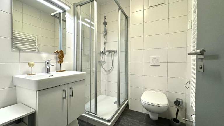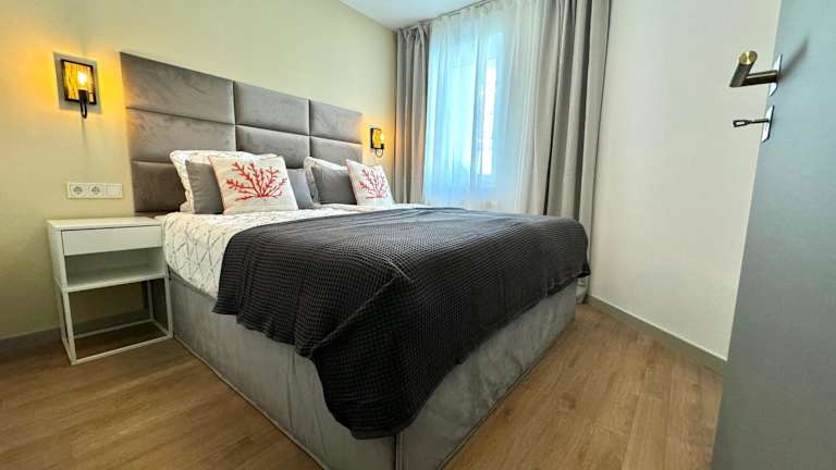 Die Ferienwohnung besteht aus einem Schlafzimmer, einem Wohnzimmer und einer gut ausgestatteten Küchenzeile mit Kühlschrank und Geschirrspüler. Handtücher und Bettwäsche werden bereitgestellt. Die Wohnung bietet Annehmlichkeiten wie kostenfreies WLAN und einen TV.