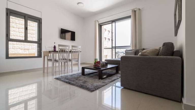 Die Unterkunft Yafo 35 - Isrentals befindet sich direkt im Herzen von Jerusalem, in der Nähe von bedeutenden Sehenswürdigkeiten wie dem Garten Gethsemane und der Kirche aller Nationen. Die Lage bietet einen schönen Stadtblick von einem Balkon.