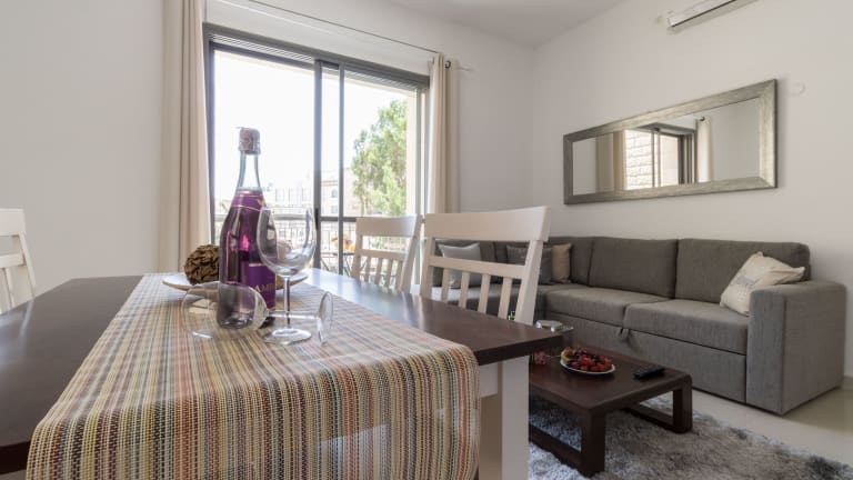 Yafo 35 - Isrentals ist eine Ferienwohnung mit einem Schlafzimmer und verfügt über moderne Annehmlichkeiten wie Klimaanlage und Flachbild-TV. Die Unterkunft bietet eine heimelige Atmosphäre und Komfort für die Gäste.