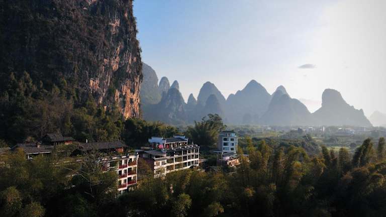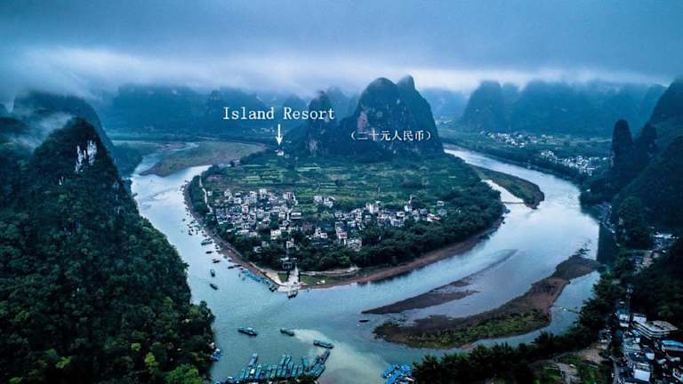 Das Li-river Island Resort Xingping Yangshuo liegt nur 300 Meter vom Ufer des malerischen Li Jiang entfernt. Es ist von üppigen Pampelmusenwäldern umgeben und befindet sich am Fuße des Yuanbao-Berges, der auf dem 20-Yuan-Schein abgebildet ist.