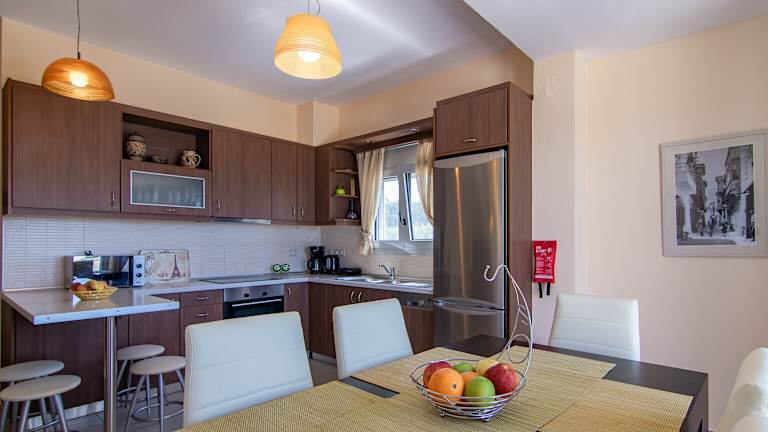 Die Wohneinheiten verfügen über eine voll ausgestattete Küche mit Kühlschrank, Geschirrspüler, Ofen, Mikrowelle und Herdplatte. Gäste können ihre eigenen Mahlzeiten zubereiten und zu sich nehmen. Weitere Verpflegungsmöglichkeiten sind nicht angegeben.