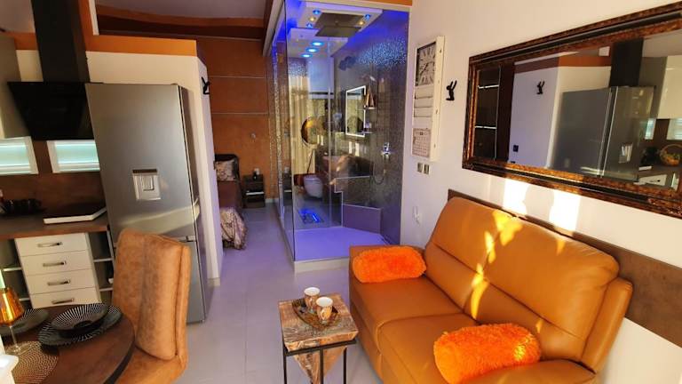 Die Zimmer in der Unterkunft Yela sind mit einem Sitzbereich, einem Kabel Flachbild-TV, einer voll ausgestatteten Küchenzeile mit Kühlschrank und Herdplatte ausgestattet. Jedes Zimmer bietet ein eigenes Badezimmer mit Dusche und kostenlosen Pflegeprodukten.