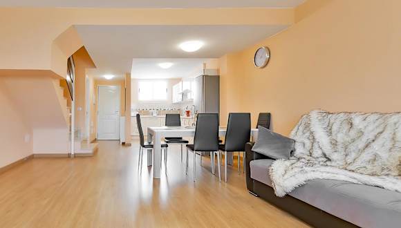Die Unterkunft befindet sich in der Calle Madrid 11 in Villas Santa Monca, etwa 1,2 km vom Strand Playa de Fanabe entfernt. In der Nähe finden sich zudem die Strände Playa de Torviscas und Playa del Duque sowie das Erlebnisbad Aqualand. Der nächstgelegene Flughafen, der Flughafen Teneriffa Süd, ist rund 20 km entfernt.
