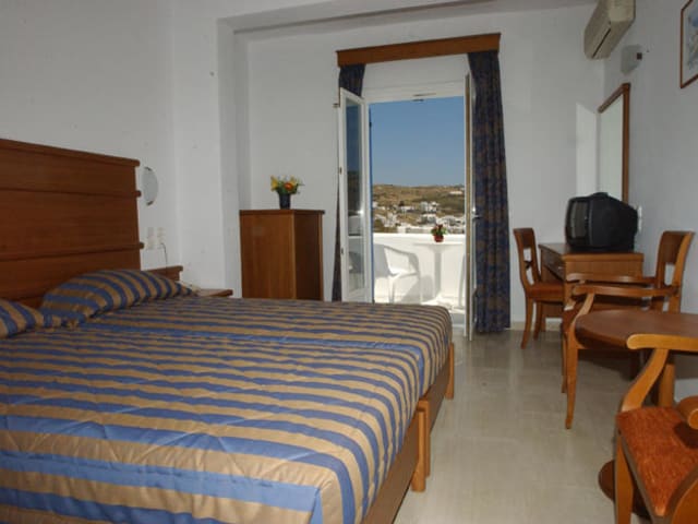 Das Hotel befindet sich in der Siedlung von Ornos, in einer wunderschönen Bucht auf der westlichen Seite der Insel Mykonos. Der Strand ist nur etwa 200 m entfernt und der Flughafen Mykonos liegt ca. 3 km entfernt.