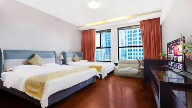 Das Yise Apartment Beijing Guomao CBD Branch ist eine moderne Unterkunft, die das Gefühl von Heimeligkeit und Eleganz ausstrahlt. Die Gäste haben die Möglichkeit, sich in den stilvoll gestalteten Räumlichkeiten wohlzufühlen. Das Hotel wird von einem privaten Gastgeber geführt und bietet eine Vielzahl an Annehmlichkeiten, darunter einen 24-Stunden-Zimmerservice, ein Fitnesscenter sowie eine Terrasse.