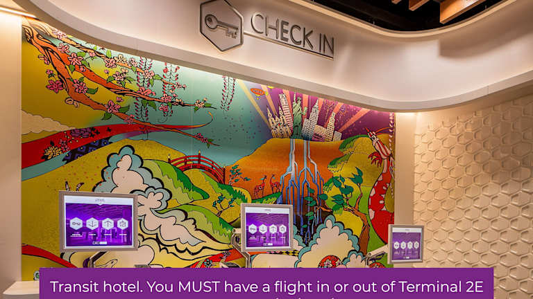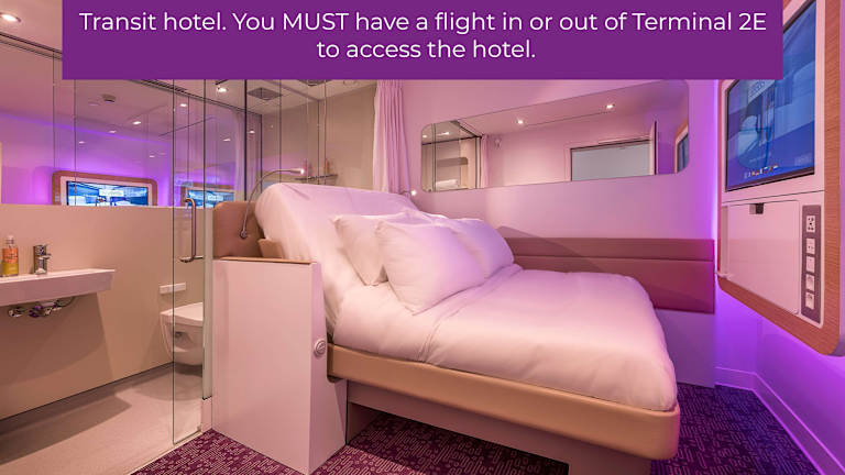Das YOTELAir Paris CDG - Transit Hotel befindet sich im Transitbereich des Terminal 2E am Flughafen Paris - Charles de Gaulle. Die Lage hinter der Pass- und Sicherheitskontrolle ermöglicht einen direkten Zugang zu den Abflug- und Ankunftsgates.