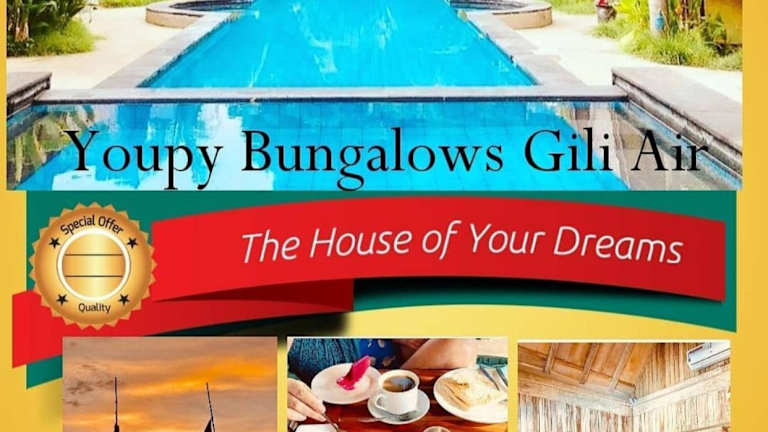 Die Youpy Bungalows befinden sich in Gili Air, nur einen Katzensprung vom Gili Air Beach entfernt. Die Lage bietet einen schönen Zugang zur Natur und ist in der Nähe verschiedener Sehenswürdigkeiten, wie dem Hafen Bangsal, Tiu Pupus Waterfall und Tiu Gangga Waterfall.