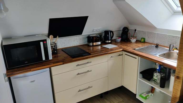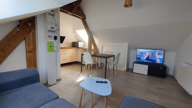 Die Unterkunft Appartement T3 "YUCA" befindet sich im Hyperzentrum von Ernée, umgeben von verschiedenen Freizeitmöglichkeiten und kulturellen Sehenswürdigkeiten. In der Nähe sind Golfplätze sowie märchenhafte Schlösser, wie das Château de Fougères und das Château de Vitré, zu finden.