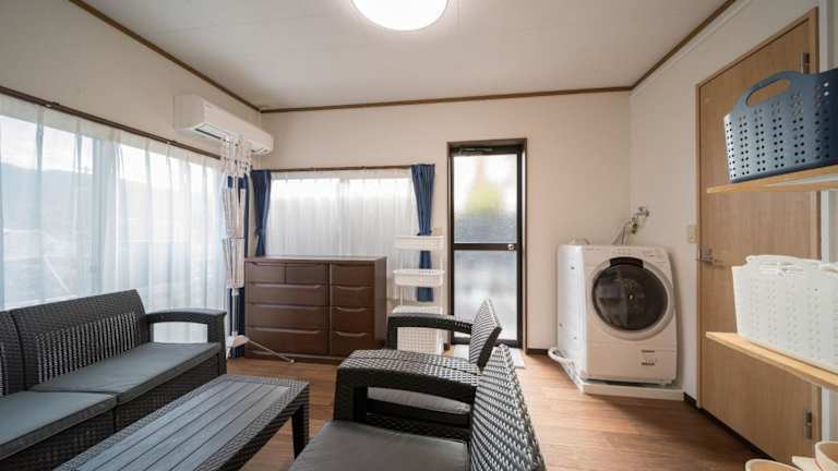 YUFU NO YU TOKI - Vacation STAY 87954 ist ein komfortables Ferienhaus, das mit Klimaanlage ausgestattet ist. Es bietet Platz in 4 Schlafzimmern und verfügt über einen TV sowie eine gut ausgestattete Küche, die einen Kühlschrank und eine Mikrowelle umfasst. Die Unterkunft ist mit kostenlosem Wifi und einem Privatparkplatz ausgestattet, was den Gästen zusätzliche Bequemlichkeit bietet.