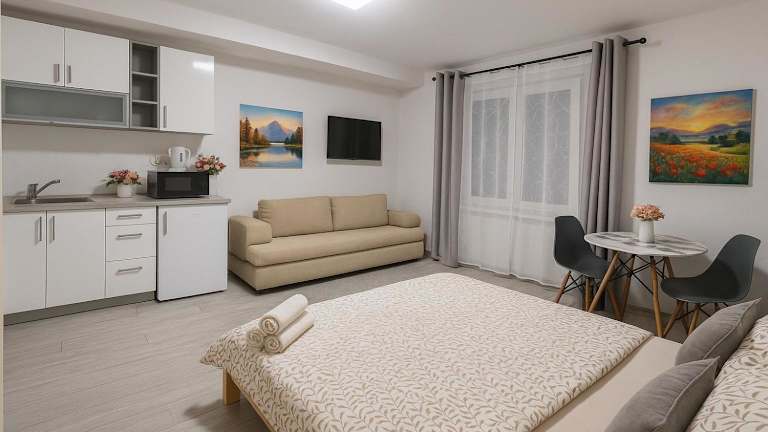 Die Unterkunft Yvett House befindet sich in Sfântu Gheorghe, rund 21 km von Bauernburg Tartlau entfernt. Die Umgebung ist ruhig, und es gibt mehrere Sehenswürdigkeiten in der Nähe, darunter die Kirchenburg Hărman/Honigberg in 21 km Entfernung sowie der Rathausplatz, der Schwarze Turm und die Strada Sforii, die alle etwa 37 km entfernt liegen. Der nächstgelegene Flughafen ist der Internationale Flughafen Brașov-Ghimbav in 34 km Entfernung.
