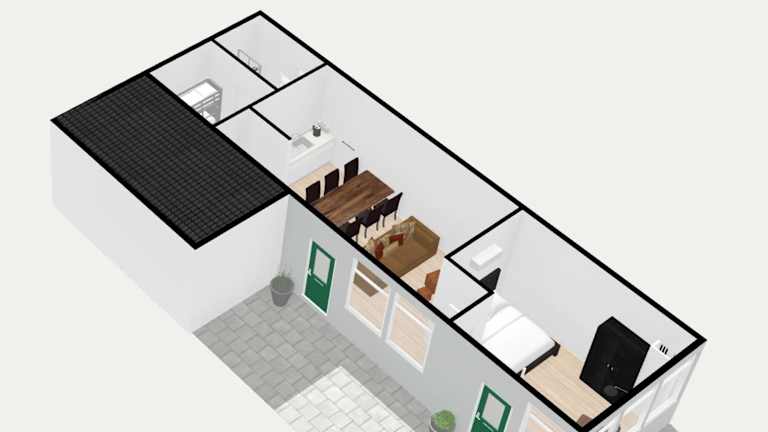 Das Ferienhaus besteht aus 2 Schlafzimmern, einem Wohnzimmer und einer voll ausgestatteten Küche mit Kühlschrank und Wasserkocher. Es gibt ein Badezimmer mit Dusche und Haartrockner. Handtücher und Bettwäsche werden bereitgestellt.