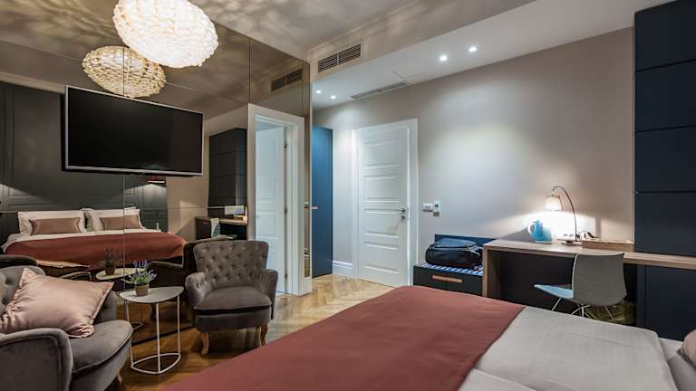 Das Zadera Accommodation bietet klimatisierte Zimmer, die mit einer Gemeinschaftsküche ausgestattet sind. Jedes Zimmer verfügt über einen Schreibtisch, eine Sitzecke und einen Flachbild-Kabel-TV. Die eigenen Badezimmer sind mit einer Badewanne oder Dusche ausgestattet und bieten kostenfreie Pflegeprodukte, Hausschuhe und einen Haartrockner. Für zusätzlichen Komfort stehen ein Wasserkocher und eine Minibar in jedem Zimmer zur Verfügung. Gäste können sich also wie zu Hause fühlen und ihre eigenen Mahlzeiten zubereiten, wenn sie möchten.