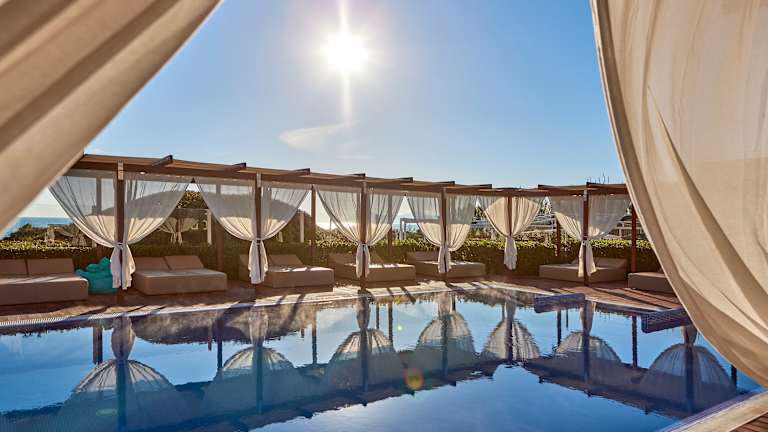 Das Hotel Zafiro Bahía bietet 289 Apartments und Studios, die höchsten Ansprüchen genügen. Sie sind für Paare, Gruppen, Familien und Gäste aller Altersklassen die ideale Wahl. Fünf der Apartments sind zudem komplett barrierefrei (z.B. für Personen mit eingeschränkter Mobilität) konzipiert. Swim Up Studio 100 Prozent an Entspannung und Erholung während Ihrer Ferien garantiert dieser Studio-Typ, ideal für Paare oder zwei Erwachsene mit Kind. Ein privater Pool vor der Terrasse mit Bali-Bett und viel mediterrane Sonne gehören dazu. Royal Appartement mit Terrasse Wenn Sie sich Privatsphäre während Ihres Aufenthalts wünschen, dann sind diese exklusiven Apartments die Wahl: luxuriöse Penthouse-Wohnungen mit traumhaftem Ausblick. Ein privater Zugang führt zu einer eigenen Terrassen-Lounge mit Jacuzzi, Sonnenliegen und Outdoor-Bett. Premium Deluxe Appartement Das Besondere dieser Apartments: jedes einzelne verfügt über einen gepflegten kleinen Terrasse mit Jacuzzi. Angenehmer kann man seine Ferien kaum verbringen. Swim Up Appartement Und gleich noch ein exklusiver Apartment-Typ im Erdgeschoss. Vom Apartment aus haben Sie direkten Zugang zu einer Sonnen-Terrasse mit Sonnenliegen und eigenem Pool. Doppel Appartement Mit zwei Schlafzimmern, jeweils mit Doppelbett und einem Wohnbereich mit Schlafcouch ist diese Unterkunft ideal für größere Familien oder Gruppen geeignet. Premium Appartement In diesen Apartments stehen Ihnen ein Schlafzimmer mit Doppelbett, ein Wohnbereich mit Schlafcouch und eine herrliche Terrasse zur Verfügung. Gegen Aufpreis mit fantastischem Meer- oder Poolblick. Premium Studio Die hellen, freundlichen Studios mit eigener Terrasse bieten alle Annehmlichkeiten eines Apartments auf kleinstem Raum.