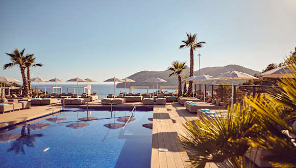 Entdecken Sie das neue Zafiro Palace Andratx in Camp de Mar, einem wunderschönen Strand im Südwesten der Insel, nur vier Kilometer von Andratx und seinem malerischen Fischerhafen entfernt. Es handelt sich dabei um eine der Regionen Mallorcas, die sich bis heute die Ruhe und die Schönheit ihrer Umgebung bewahren konnten, umgeben von reiner Natur und Bergen. Hier haben bereits unzählige Berühmtheiten und namhafte Gäste ihr ganz privates Reiseziel gefunden, um entspannt die Insel genießen zu können. Mit dem dritten Hotel in der Palace Linie setzt Zafiro Hotels weiterhin auf gediegenen Luxus und Komfort. Ein modernes, innovatives 5-Sterne-Hotel mit Service - Leistungen, die Ihnen das unverfälschte Vergnügen eines einzigartigen und privilegierten Aufenthalts vermitteln. Mit einer Gesamtfläche von 40.000 Quadratmetern verfügt es über große Garten - Anlagen, Spielräume für Kinder aller Altersstufen, elf Outdoor - und zwei Indoor - Pools sowie über eine große Auswahl an Aktivitäten, deren Ausübung sowohl innerhalb als auch außerhalb des Hotels möglich sind. Außerdem befindet sich das Hotel Zafiro Palace Andratx nahe des renommierten Golf Club Andratx. Hier können Golf - Liebhaber erfüllte Ferien gleich mit ihrem Lieblingssport kombinieren. Auch die Räume wurden exklusiv gestaltet und so eingerichtet, dass sie maximalen Komfort bieten. Jeder einzelne liegt in der Kategorie Suite oder Superior, mit Hydromassage - Wanne und mit einem herrlichen Blick über die Bucht von Camp de Mar. In diesem Hotel möchten wir auch zum ersten Mal den Plunge - Pool vorstellen, eine neue Suiten - Modalität mit eigenem Pool auf der eigenen Terrasse. Das Hotel verfügt über einen ausgesuchten Service und eine sorgfältig ausgewählte Ausstattung. Dazu gehört auch das Programm Zen, Body & Mind, ein einzigartiges Gesundheits - und Schönheits - Konzept, bei dem ein hervorragendes Team von Fachleuten innovative Treatment - Techniken und - Anwendungen durchführt, die individuell an jeden Gast angepasst werden. Dazu ein voll ausgestattetes Fitness - Studio mit Agua - Bereich und Sauna. Weiter stehen Ihnen fünf Restaurants zur Verfügung, davon vier thematisch À la carte Restaurants sowie verschiedene Relax - Areas, die ausschließlich den Erwachsenen vorbehalten sind, um dort völlig abschalten zu können.