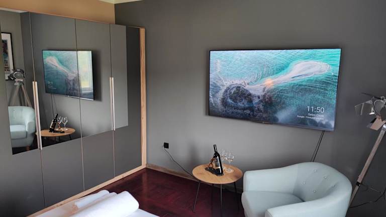 Die Ferienwohnung besteht aus zwei Schlafzimmern, einem Wohnzimmer und einer voll ausgestatteten Küche. Die Ausstattung umfasst einen Kühlschrank, eine Kaffeemaschine sowie ein Badezimmer mit Dusche und kostenlosen Pflegeprodukten. Zu den Annehmlichkeiten gehören ein Flachbild-TV mit Satellitenkanälen, ein Computer und ein iPad. Die Unterkunft verfügt über klimatisierte, schallisolierte Zimmer und allergikerfreundliche Optionen sind ebenfalls verfügbar.