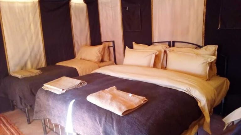 Das Camelman Camp in Merzouga ist eine ideale Unterkunft für Reisende, die eine authentische Wüstenerfahrung suchen. Mit klimatisierten Zimmern und einem Gemeinschaftsbad bietet das Camp den Gästen Komfort und eine einzigartige Atmosphäre. Die freundlichen Mitarbeiter stehen rund um die Uhr zur Verfügung und sprechen mehrere Sprachen. Genießen Sie ein kontinentales Frühstück oder ein Frühstücksbuffet und erkunden Sie die umliegenden Attraktionen wie den Flamingo-See und die Kameltrekking-Sahara-Tour.