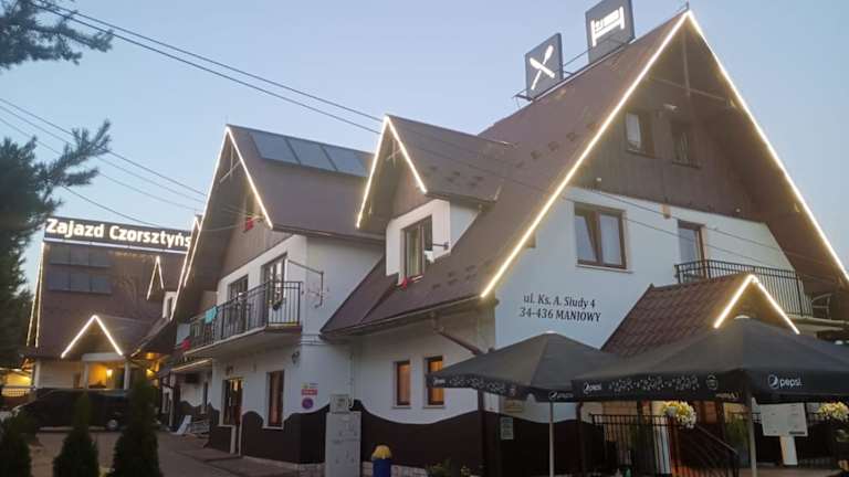 Die Unterkunft Zajazd Czorsztyński befindet sich in Maniowy in der Region Kleinpolen, etwa 16 km von der Burg Niedzica entfernt. In der Umgebung gibt es zahlreiche Freizeitmöglichkeiten wie Wandern und Skifahren. Therme Bania ist 23 km entfernt.