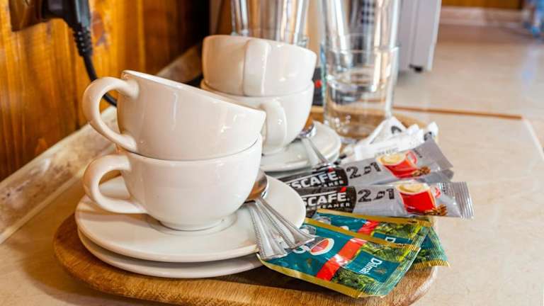 Die Verpflegung umfasst ein Frühstück, das als Buffet, à la carte oder in Form continentalen Essens serviert wird. Das hoteleigene Restaurant bietet polnische Küche an und auf Anfrage sind auch vegetarische Optionen erhältlich. Darüber hinaus gibt es eine Snackbar sowie einen Cafè vor Ort, wo Gäste Zvieri und andere Snacks geniessen können.