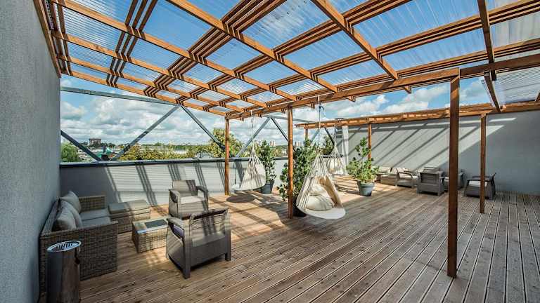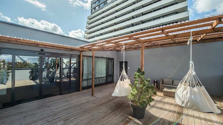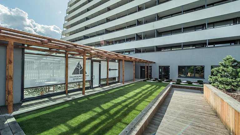 Zaliakalnio terasos apartamentai bietet eine heimelige Atmosphäre mit kostenlosem Wifi, einem Garten, einer Gemeinschaftslounge und einer Terrasse. Die Unterkunft ist eine Nichtraucherunterkunft und verfügt über verschiedene Annehmlichkeiten wie einen Kinderspielplatz und eine Gemeinschaftsküche.