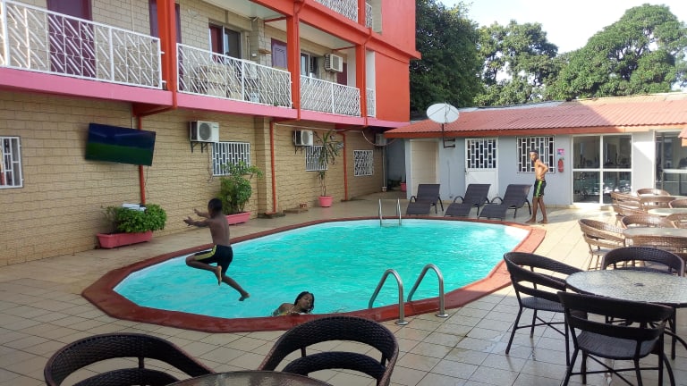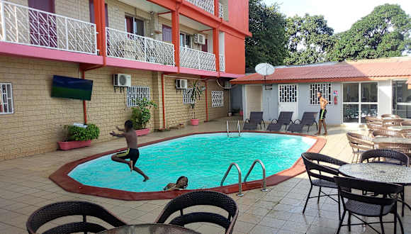 Willkommen im Zambezi Inn Hotel in Conakry! Dieses Hotel bietet eine entspannte Atmosphäre und eine Vielzahl von Annehmlichkeiten für einen angenehmen Aufenthalt. Genießen Sie den Außenpool, das Fitnessstudio und das kostenlose WLAN. Das Zambezi Restaurant serviert internationale Küche und bietet eine Bar/Lounge. Das Hotel verfügt über einen Textilreinigungsservice, eine rund um die Uhr besetzte Rezeption und mehrsprachiges Personal. Kostenlose Parkplätze stehen zur Verfügung. Die 22 klimatisierten Zimmer sind komfortabel eingerichtet und verfügen über kostenloses WLAN und Kabel-TV. Das Hotel liegt in der Nähe von Sehenswürdigkeiten wie dem Stade 28 Septembre und der Faysal-Moschee.