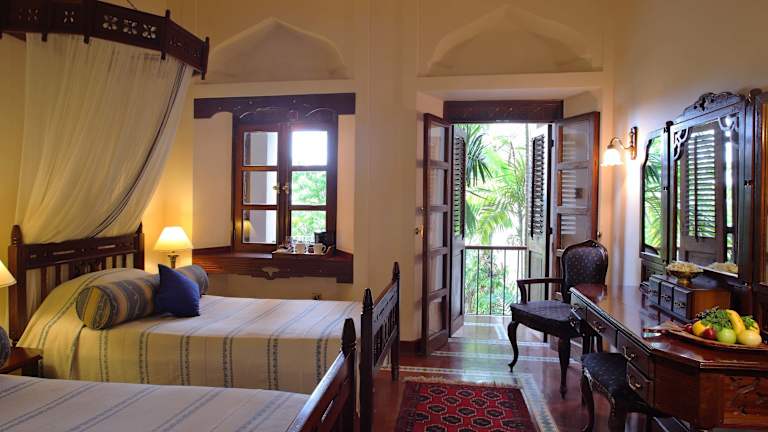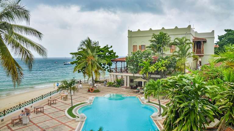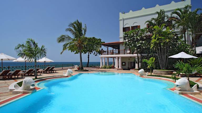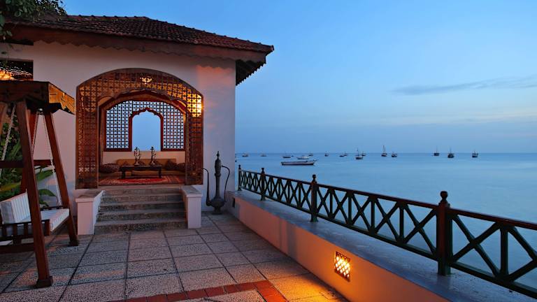 Das Hotel liegt am Meer im historischen Viertel Stone Town, umgeben von Sultanspalästen, portugiesischen Forts, antiken Dhow-Häfen und bunten Basaren. Es stellt eine Oase der Ruhe und Opulenz dar, inmitten des geschäftigen Treibens einer der ältesten und zauberhaftesten Städte Afrikas.