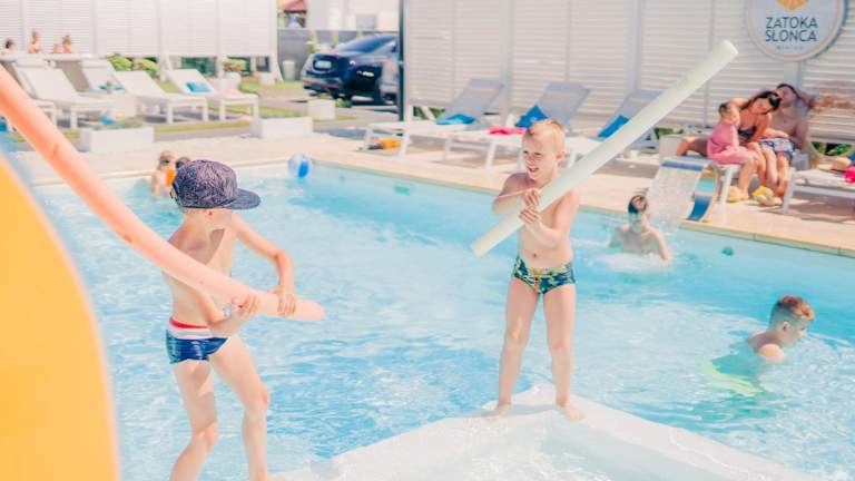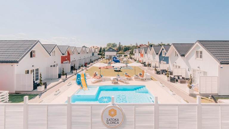 Zatoka Slonca - Domki z basenem, WiFi i parking w cenie! bietet Übernachtungsmöglichkeiten in heimeliger Atmosphäre mit einem saisonalen Aussenpool. Die Unterkunft ist nichtraucher und bietet Gratis Wifi in der ganzen Anlage, sowie einen kostenlosen Privatparkplatz. Zudem stehen ein Garten und eine Terrasse zur Verfügung. Ein Kinderclub und ein Kinderspielplatz machen die Unterkunft besonders familienfreundlich, während Animateure für Unterhaltung sorgen.