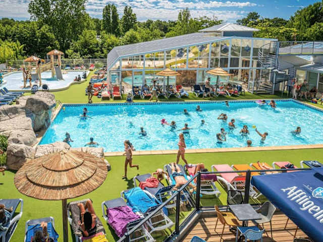 Camping - Parc aquatique - ccag00b bietet Übernachtungsmöglichkeiten in einem angenehmen Ambiente mit einem Aussenpool, einer Terrasse und einer Bar. Gäste haben zudem Zugang zu einer Küche mit Kühlschrank. Der Wasserpark und der Innenpool sorgen für eine erholsame Freizeitgestaltung.