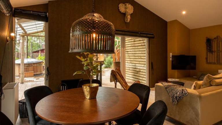 Der ZEN-Bungalow NO 4 met sauna en hottub bietet eine heimelige Atmosphäre mit einem Garten und einer Terrasse mit Blick ins Grüne. Die Unterkunft eignet sich hervorragend für einen erholsamen Aufenthalt, wobei ein optionaler Zugang zu einer Sauna und einem Jacuzzi verfügbar ist. Ein Privatparkplatz steht den Gästen vor Ort zur Verfügung.