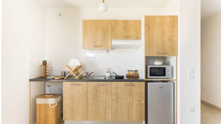 Die Wohneinheiten sind mit einem Sitzbereich mit Sofa, einem Essbereich sowie einer voll ausgestatteten Küchenzeile ausgestattet. Zu den Kochmöglichkeiten gehören ein Kühlschrank, eine Mikrowelle und eine Herdplatte. Schallisolierte Zimmer sorgen für eine ruhige Atmosphäre.