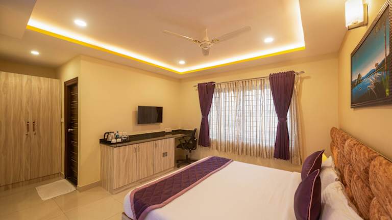 Die Zimmer im Zenith Hotels Hebbal Bangalore verfügen über einen Kleiderschrank, einen Schreibtisch sowie einen Flachbild-TV. Einige Wohneinheiten sind zusätzlich mit einem Balkon ausgestattet. Bettwäsche und Handtücher werden bereitgestellt und die Zimmer sind alle mit einem eigenen Badezimmer versehen.